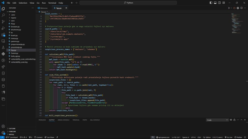 Primer Python koda za detekciju i uklanjanje xyz malvera