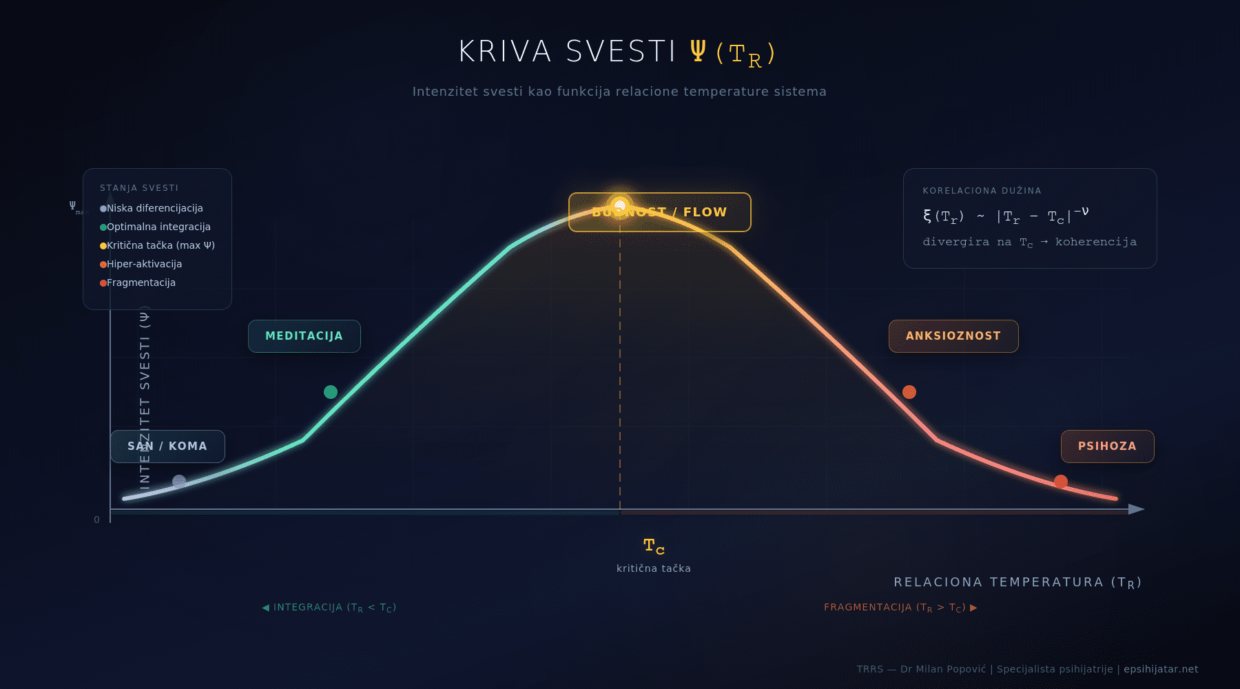 Entropija svesti (Sψ): Mera fragmentacije iskustva. Nije nužno neopadajuća.